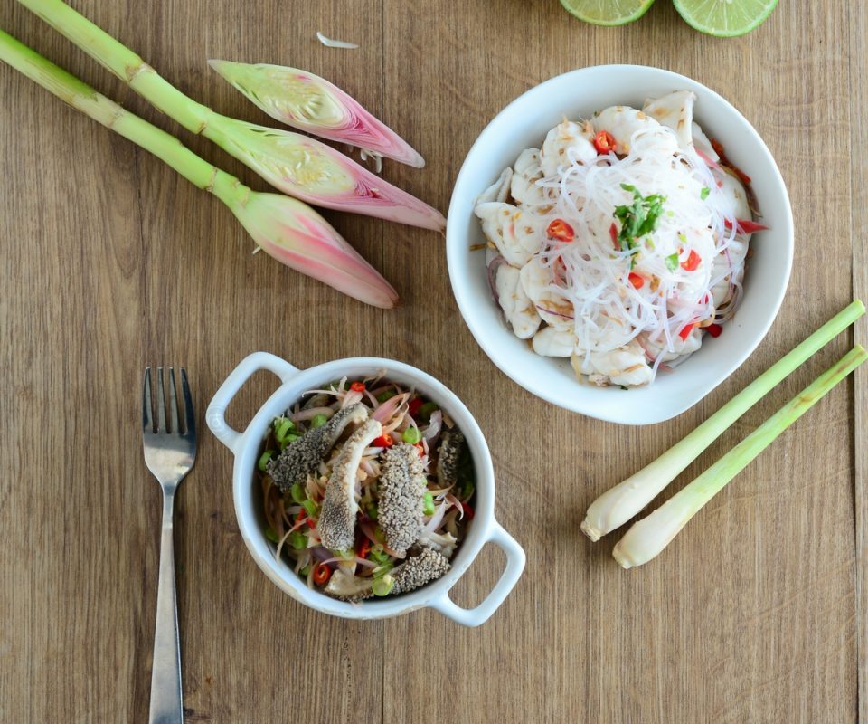 Saya tahu kebanyakan hidangan Thai melibatkan sos ikan. 2-3 helai daun limau purut. Lagi satu sebenarnya kalau masak tomyam pun boleh.